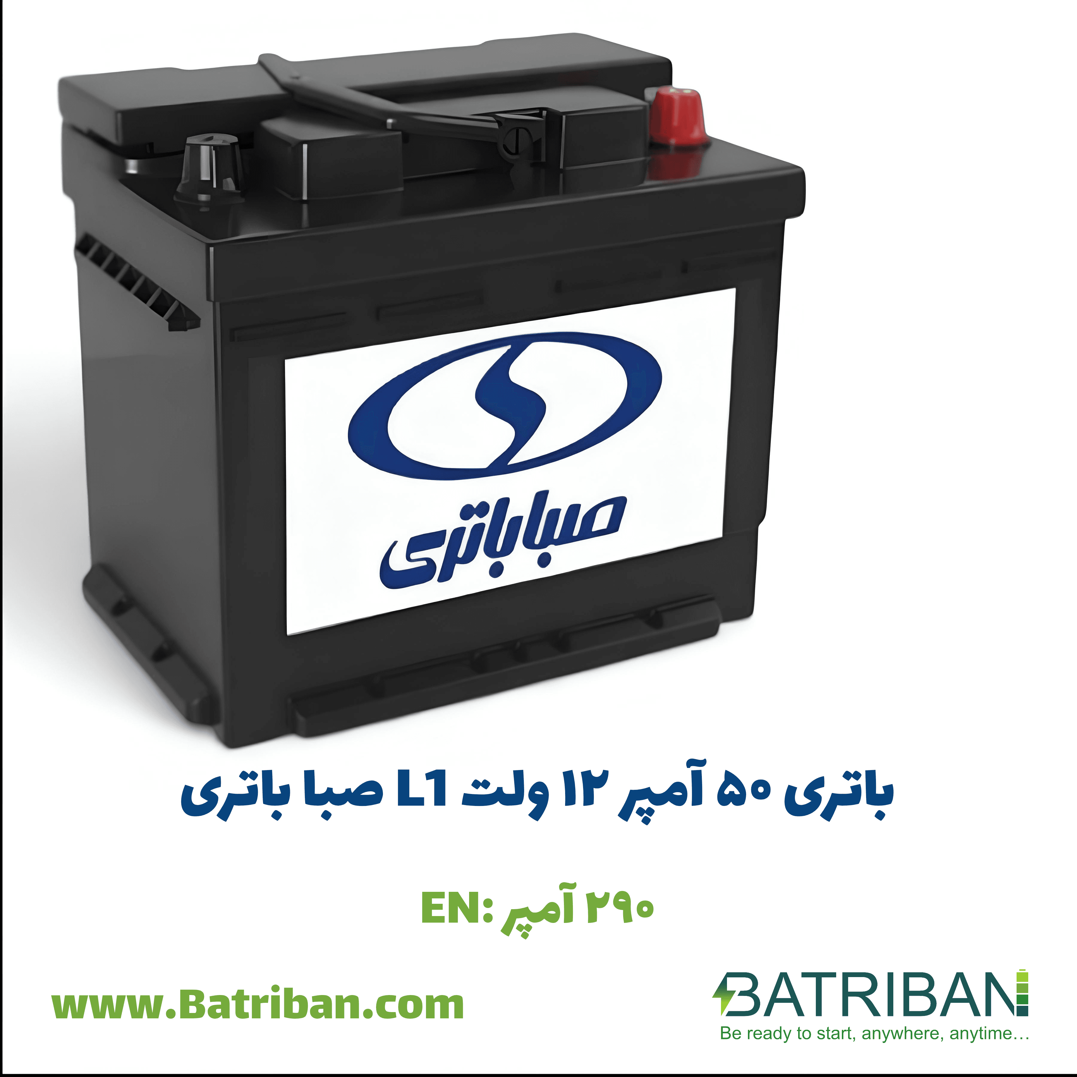 باتری 50 آمپر L1 صبا دارای جریان الکتریکی 50 آمپر و استاندارد A 290 (EN) می باشد. این باتری برای خودروهایی نظیر پراید، پژو 206( سال 97 به بعد)، پژو 207(سال 97 به بعد)، کوییک، تیبا، ساینا، رانا(سال 97 به بعد)، رانا پلاس، هیوندای i20 و… مناسب بوده و همخوانی با شارژ دینام آنها خواهد داشت.