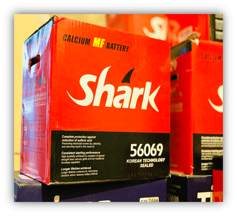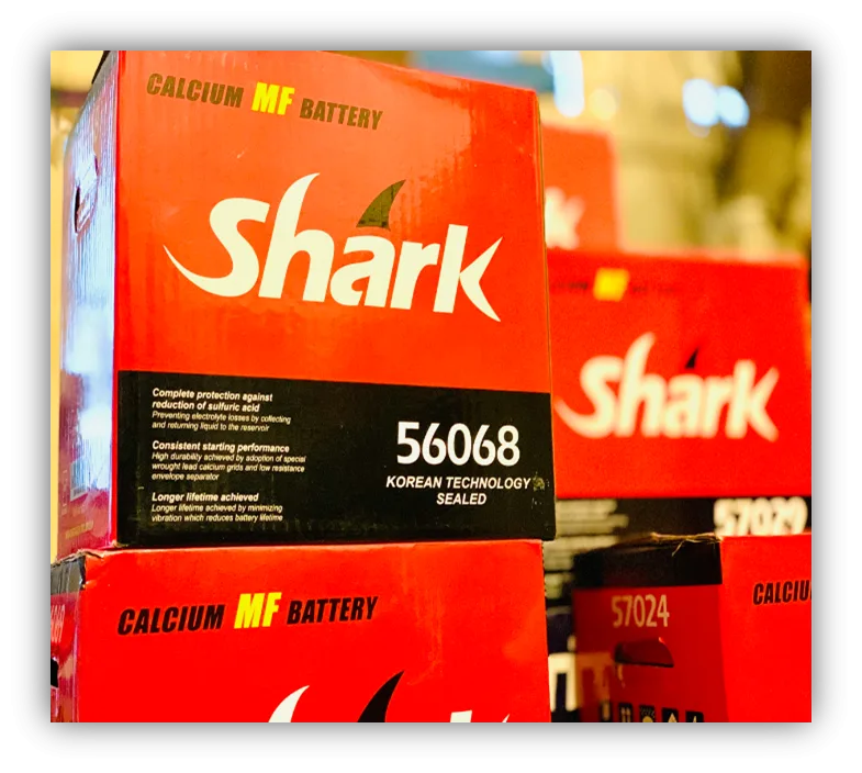 باتری 60 آمپر شارک،یکی از محصولات پریمیوم و ممتاز شرکت نیرو گستران خراسان است. به طور خلاصه باتری های 60 آمپر شارک سه نوع دارد:باتری 60 آمپر معمولی(پایه کوتاه)،6068 و 6069 که به دلیل بلند بودن قطب های این باتری ها به آنهاD26 میگویند. باتری 6069 با جانمایی برعکس قطبها، به پایه بلند قطب مخالف معروفند که در اکثر اوقات روی ماشین های چینی قابل نصب است. در مقابل باتری 6068 که به اصطلاح به پایه بلند قطب موافق شهرت دارند، جانمایی قطب های آن همانند دیگر انواع باتری ها بوده و در اکثر اوقات روی ماشین های کره ای و ژاپنی نصب میکنند.